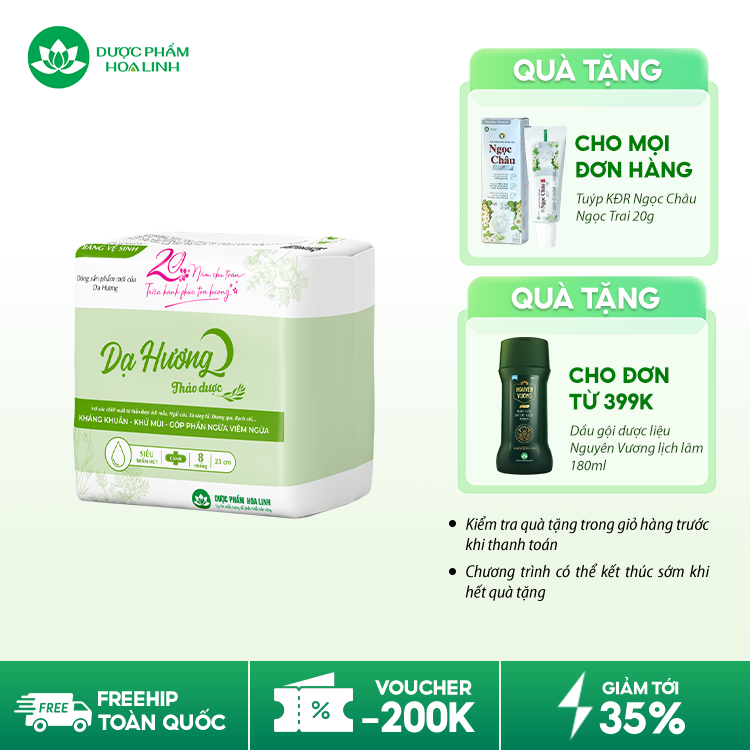 | Tên sản phẩm | Băng vệ sinh Dạ Hương Thảo dược Ban ngày / Ban đêm |